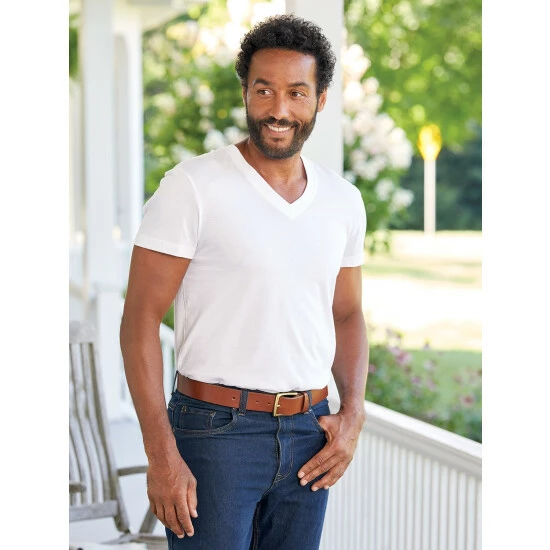 - Classic V-neck style won’t show when worn under shirts