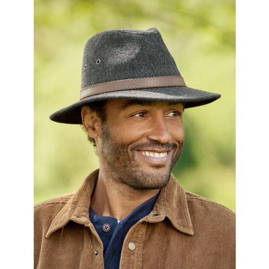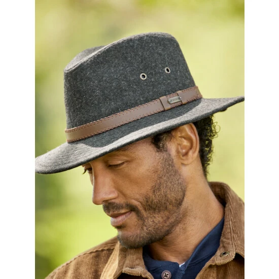 You’ll greet every day like it’s a new adventure when you know you’ll be wearing this safari hat. Right off the bat, it just looks like something Indiana Jones would wear. When you look closer, you’ll see that it’s constructed to stand up to everyday and adventure wear. The durable wool-blend keeps its shape and is water-resistant so it repels rain and snow, to keep your head dry and warm. It’s finished with a top-stitched 2-1/4″ wide brim, brass vents in the crown for breathability, a faux leather band, satin jacquard lining,and a grosgrain faux leather hatband.